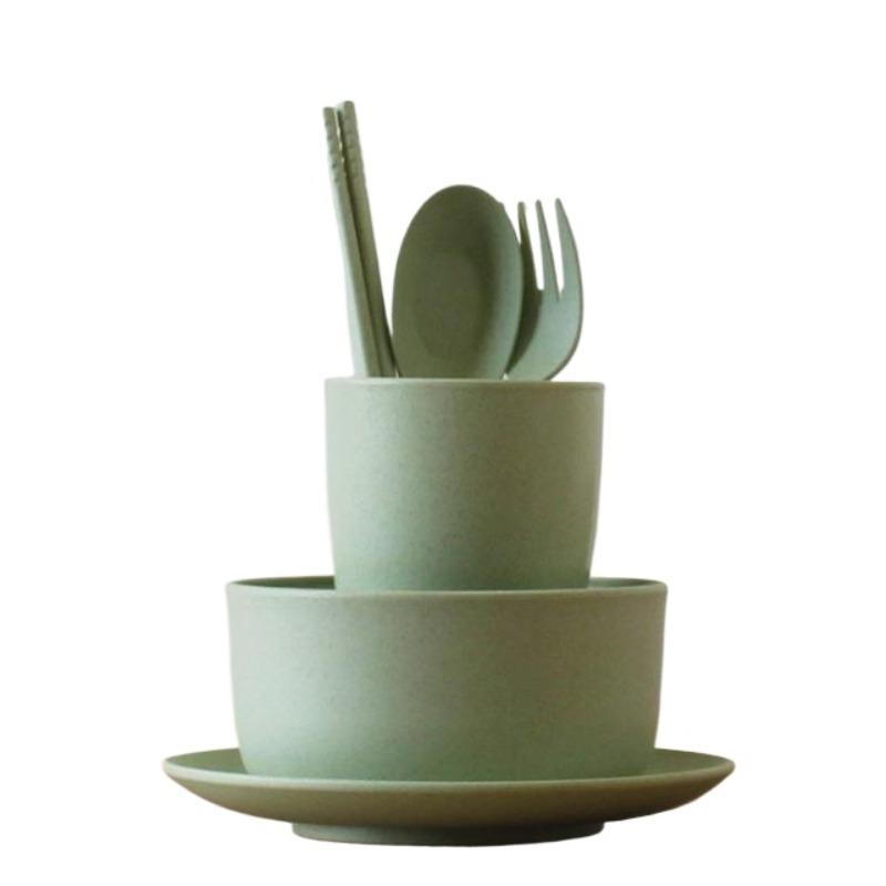 6 шт./компл., детская посуда из пшеничной соломы, детская посуда для еды, миска для кормления младенцев, обучающая посуда Spo зелёный
