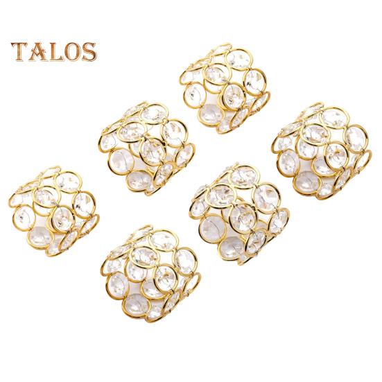 6 шт./компл. кольцо для салфеток, роскошные бусины из искусственного хрусталя, металлические блестящие элегантные украшения стола, держатель для салфеток, пряжка, свадебная вечеринка, праздничные принадлежности золотистый
