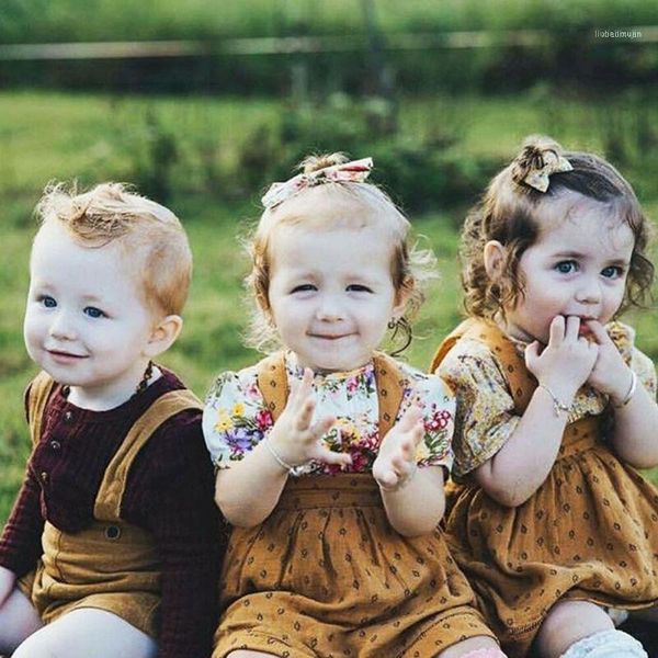 skirts infant toddler kids baby girl little big sister vintage print skirt outfits summer strapless suspender cute11, Blue