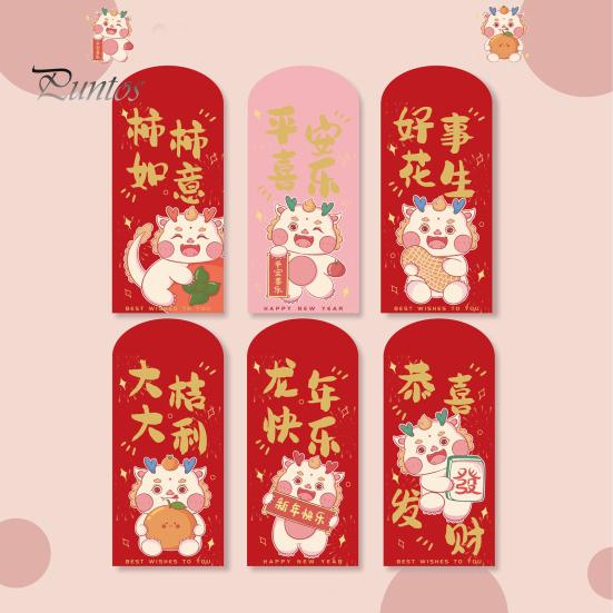 6 шт., красный конверт с рисунком дракона, праздничное украшение для новогодней вечеринки, традиционное празднование, милый красный конверт красный