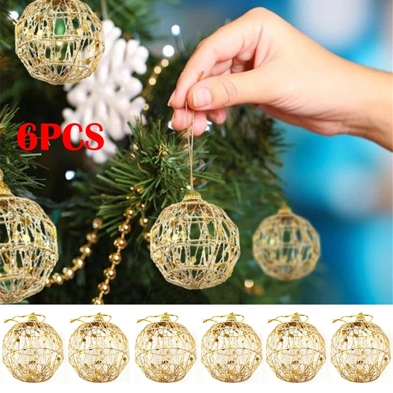 6 шт./лот Золотая Рождественская елка круглой формы, подвеска, шар, блестящие весы, Рождественское украшение, мяч, украшение на день рождения,...