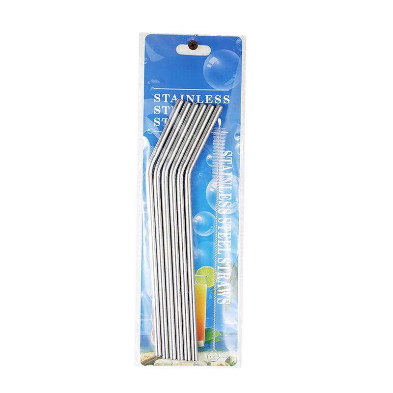 6 шт. металлических многоразовых трубочек из нержавеющей стали 304, прямые изогнутые трубочки для питья с чехлом, набор щеток для чистки, аксессуар для вечеринки в баре bending серебряный