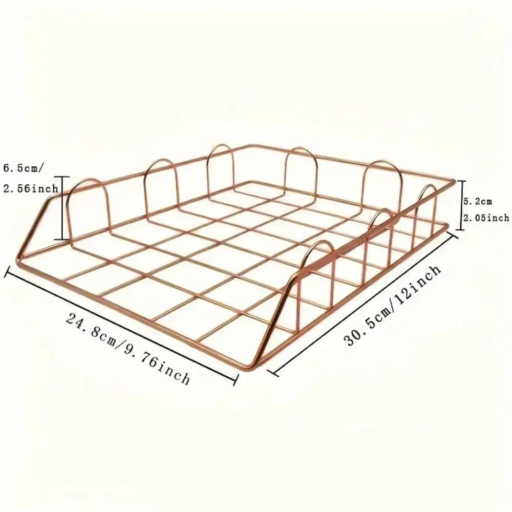 Storage Basket A4 File Storage Basket Pen Holder Mesh Bottom Paper File Document Organizer Metal Iron Rose Gold