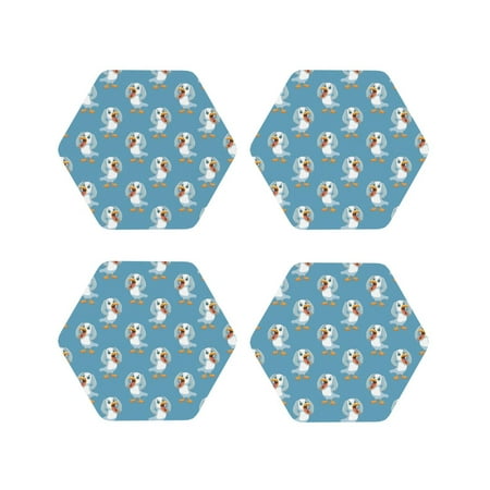 Leather Coasters with Heat-resistant for Drinks cartoon Seagull -标题2 Hexagon