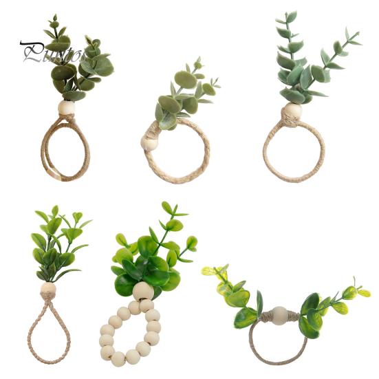 6 шт. пряжек для салфеток, искусственные листья, веревка, декор, деревянные бусины, украшения для стола в стиле бохо, кольца для салфеток, деревенские свадебные вечеринки, праздничные обеденные акценты, салфетки 6pcs