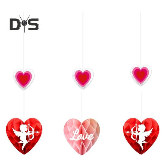 6 шт. украшение в виде сердца ко Дню святого Валентина, бумажные соты, подвесные украшения, романтические красные, розовые, сердечки для вечеринок Sets