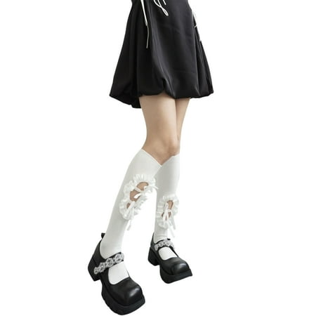 Seyurigaoka Women Knitting Socks Solid Color / Floral Fall Winter Warm Thick Middle Tube Pair Socks
