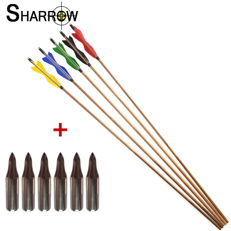 6 шт. 33 дюймов стрельба из лука бамбуковые солнечные очки ручной работы, стрелы с ID8mm цель наконечник 5 "Турция перо для лук и стрелы Принадлеж...