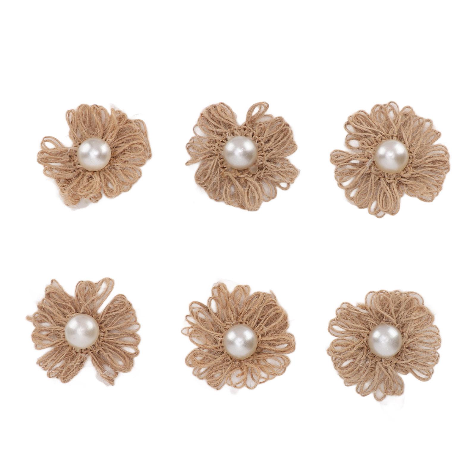 6 шт. DIY мешковины жемчужные цветы винтажная милая форма дышащие ручная работа деревенский цветок для свадеб