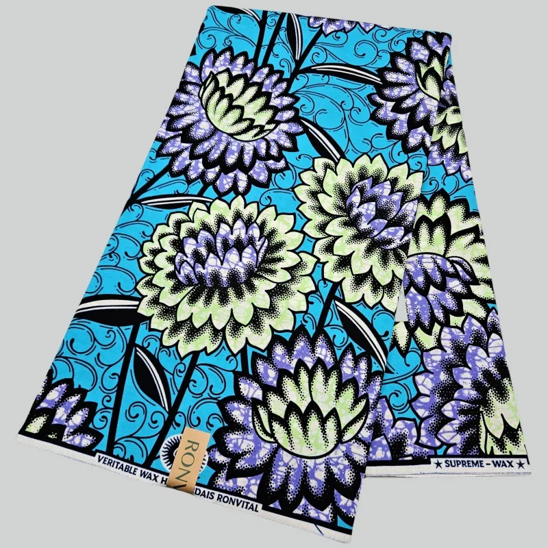 6 ярдов длинная фиолетовая синяя хлопковая восковая ткань с цветочным принтом в африканском стиле для шитья платья, дивана, занавески, скатерть шириной 120 см R2799