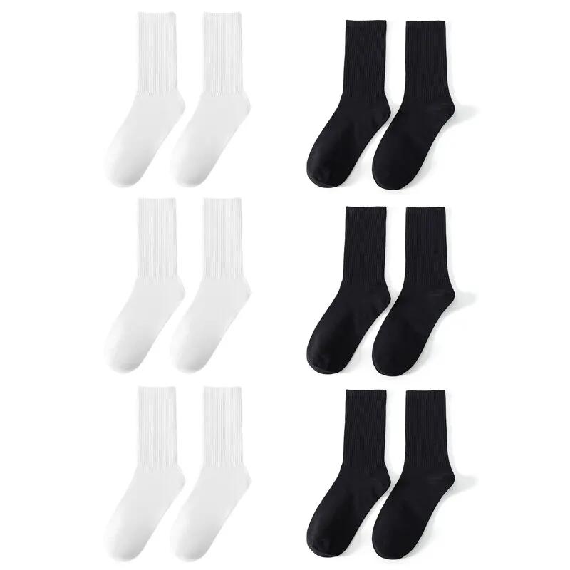 6/12 пар мужских гольфов до середины икры – однотонные черные и белые цвета, уличный стиль, дышащие повседневные носки (Вдохновлено Харадзюку) One Size