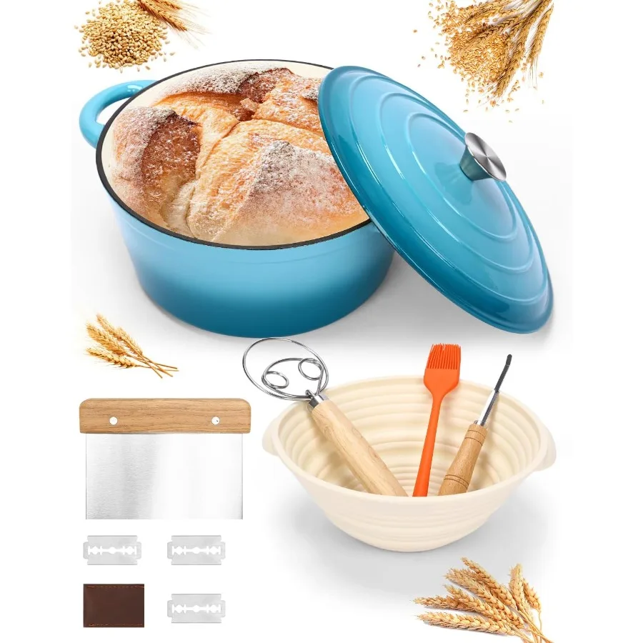 6-QT эмалированная чугунная печь для хлеба с крышкой для выпечки хлеба в домашних кухонях включает в себя корзину для защиты от закваски