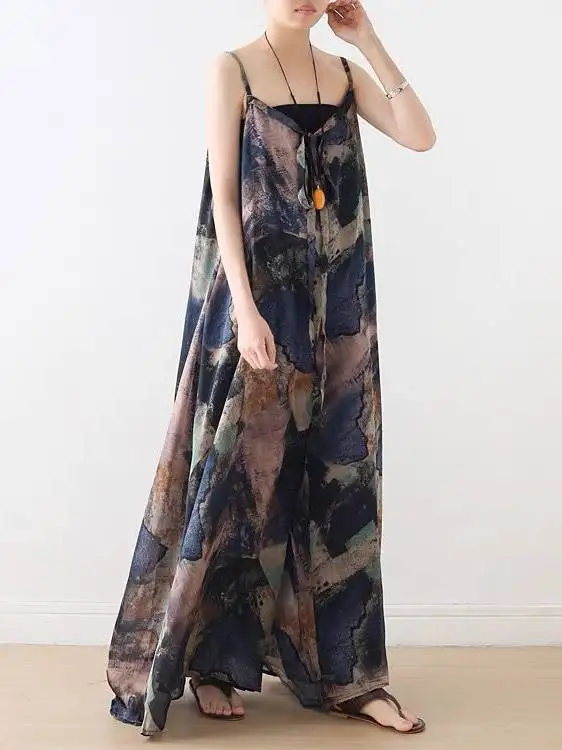 Летние цельные брюки с цветочным принтом, свободные широкие праздничные костюмы для женщин, длинные брюки с низкой талией, утепленные узлы