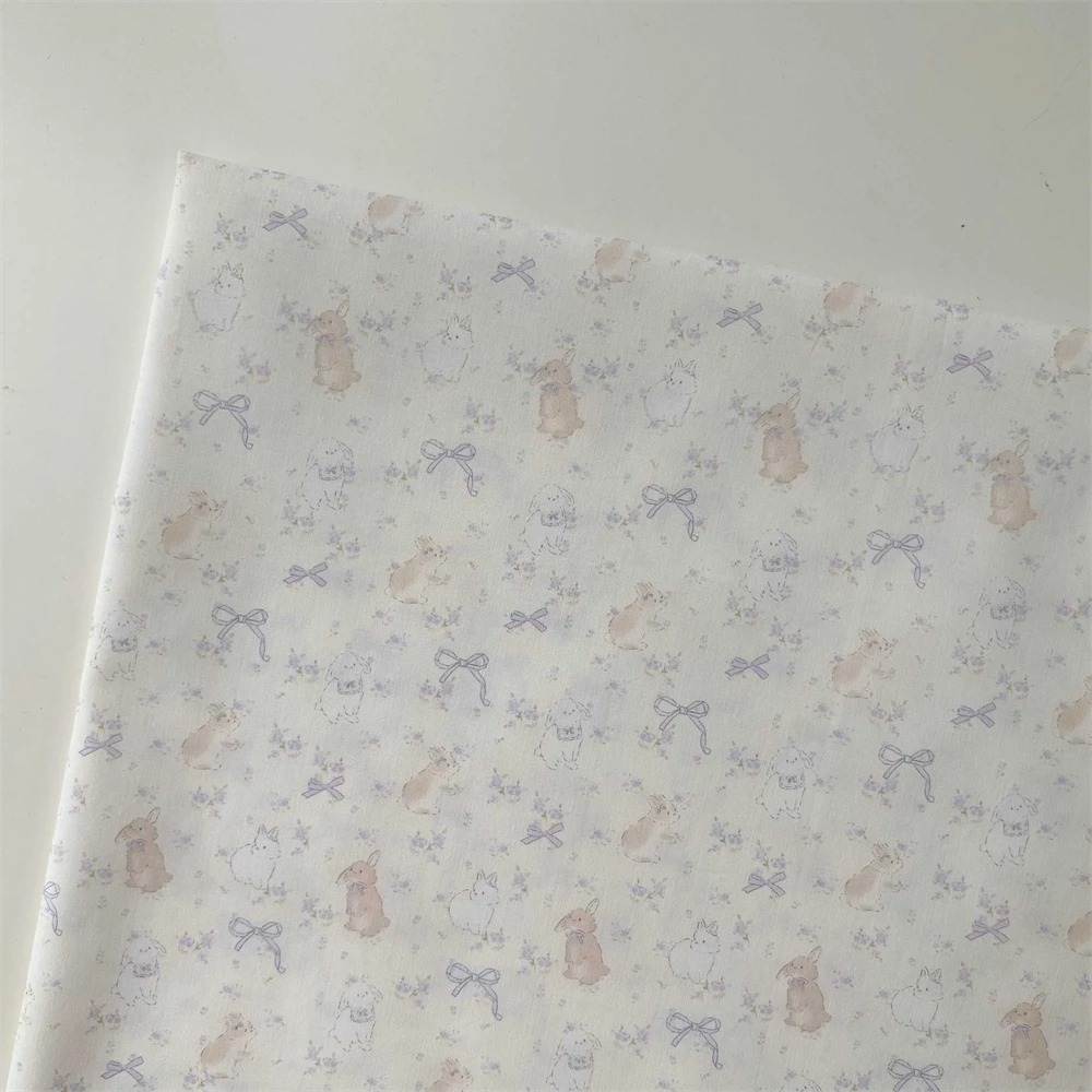 60-ниточная тканая тонкая хлопковая ткань из чистого хлопка, нежная фиолетовая рубашка с бантом и кроликом, повязка на голову, домашняя одежда, платье, ткань ручной работы «сделай сам»