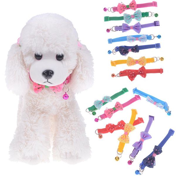 1pc candy color adjustable bow tie bell bowknot sale collar necktie puppy kitten dog cat pet collars & leashes