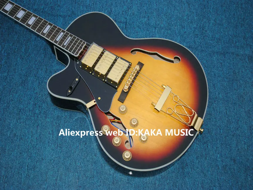 Left Handed Guitars Sunburst 3 Pickups Jazz Guitar Gold Hardware OEM From China