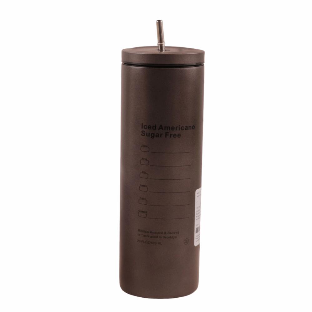 600 мл Герметичная кофейная чашка Креативная термокружка для чая Чашка для молочного чая Чашка с соломинкой для питья Спорт чёрный/серый