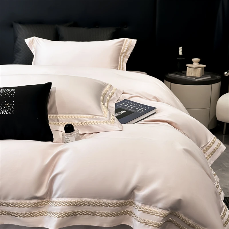 600TC египетский хлопок, роскошная вышивка, сплошной цвет, комплект постельного белья в отеле, пододеяльник, плоская/приталенная простыня, наволочки, 4 шт.