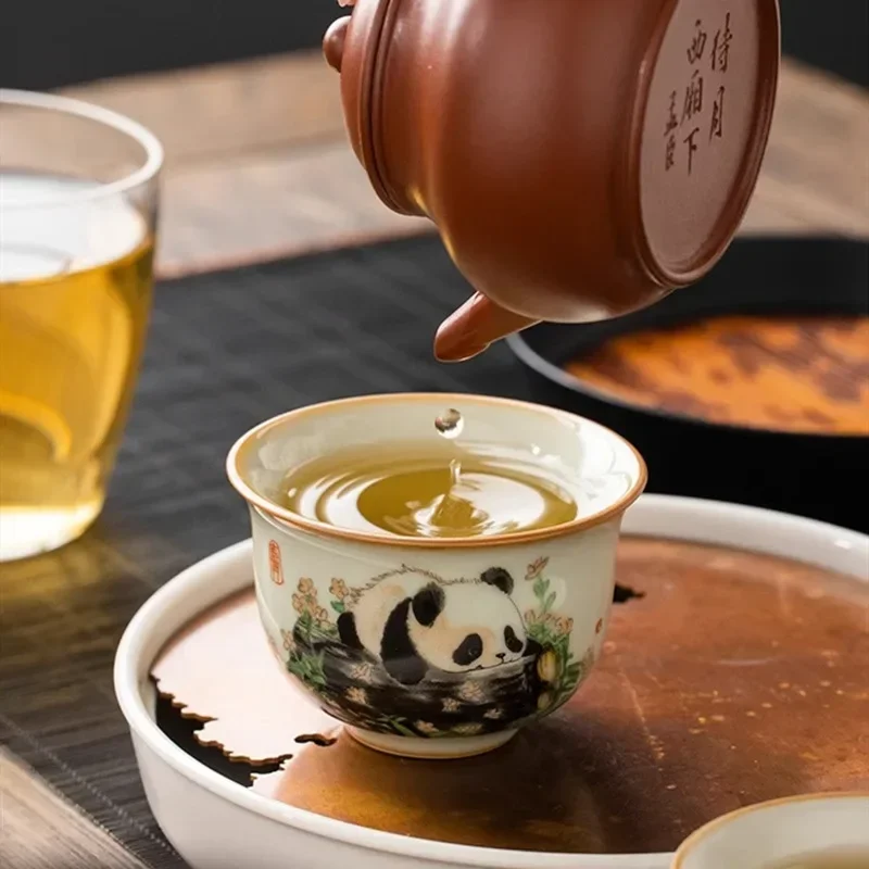 65 мл чайная чашка с пандой, китайская керамическая чашка RuYao, керамика, красивые чашки, набор чайных чашек, чайная посуда для чайной церемонии