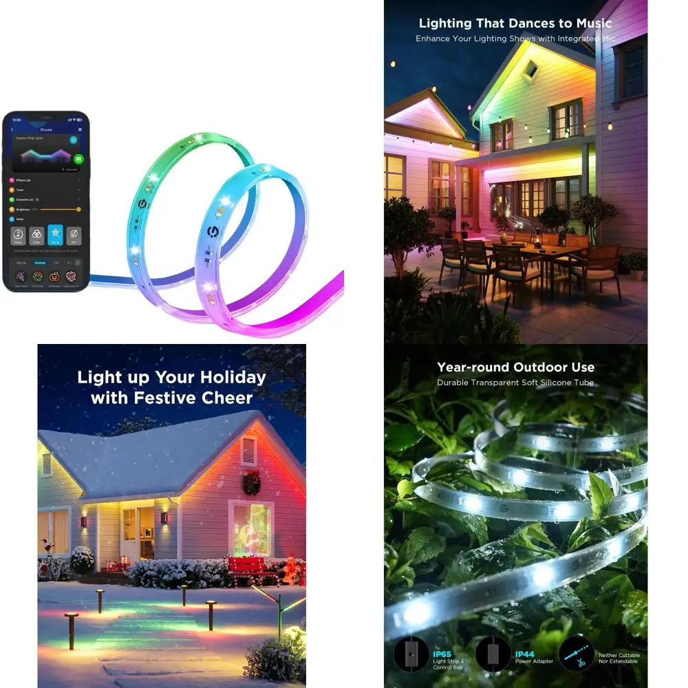 65.6ft RGBIC LED Strip Lights, 2.4G WiFi Smart, Waterproof IP65, Compatible with Alexa & Google Assistant, App Controlled for Ou