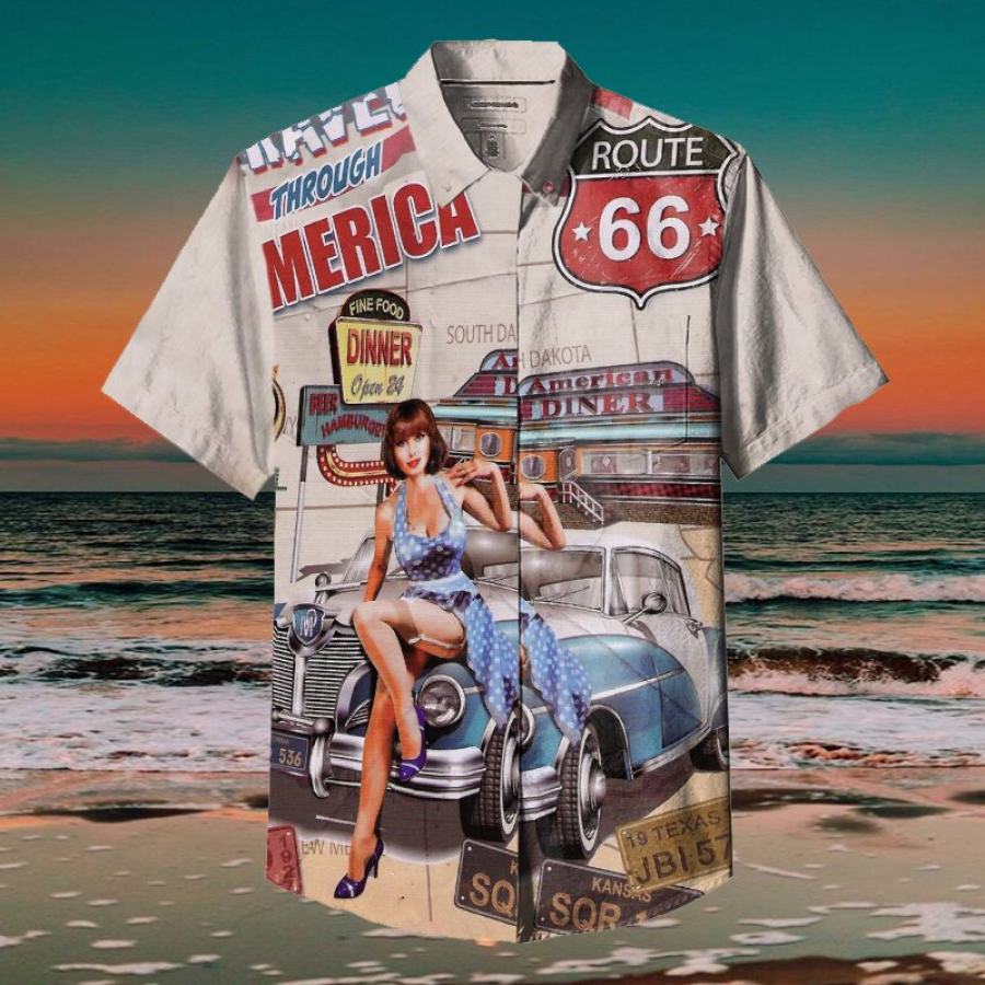 hawaii style,66 road racing print casual shirt