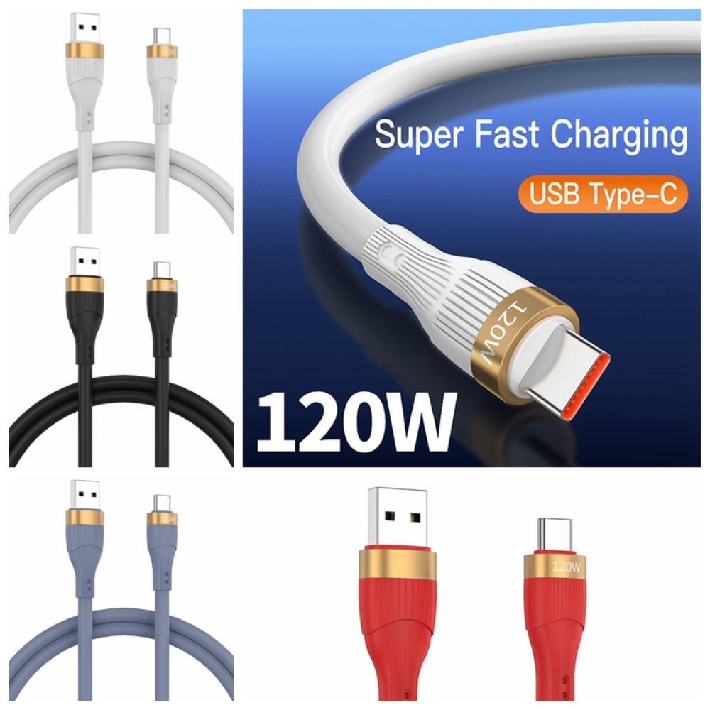 6A 120W сверхтолстый кабель типа C для быстрой зарядки 120W 6A сверхтолстый кабель для передачи данных зарядка мобильного телефона 1.2m белый