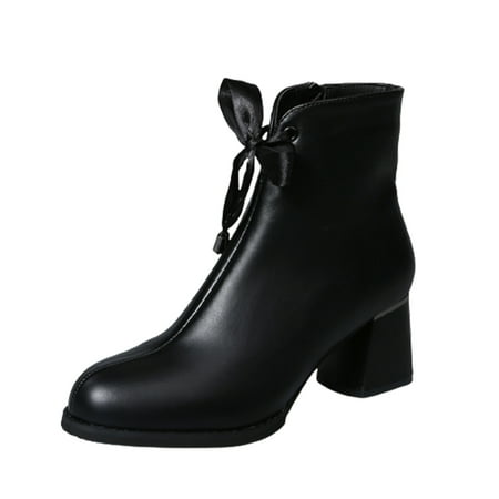 KBKYBUYZ Womens Comfy Solid Boots Zipper Women Round Head Midheel Boots Shoes
