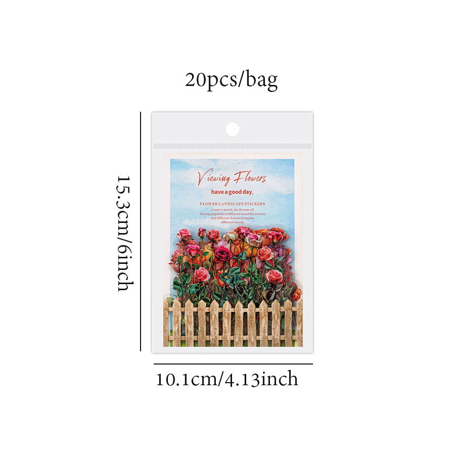 6Style 20Pcs/bag Flower Bush Landscaping Sticker Pack DIY Handbook Scrapbooking Sticker