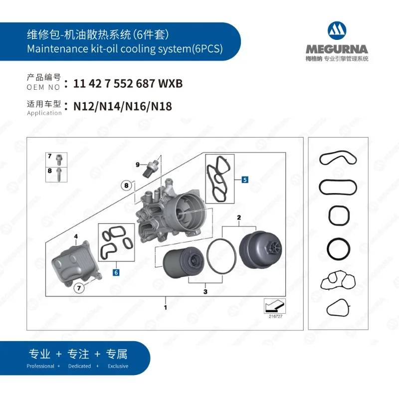 6pcs Engine Part Oil cooling system full set seal gasket repair kit fit for 1.6T BMW MINI N14 N18 R55 R56 R57 R58 R59 R60 R61