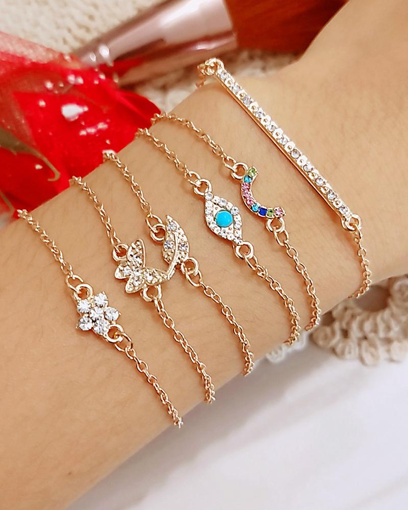 6pcs Eye Butterfly Leaf Pattern Rhinestone Decor Bracelets, Gold