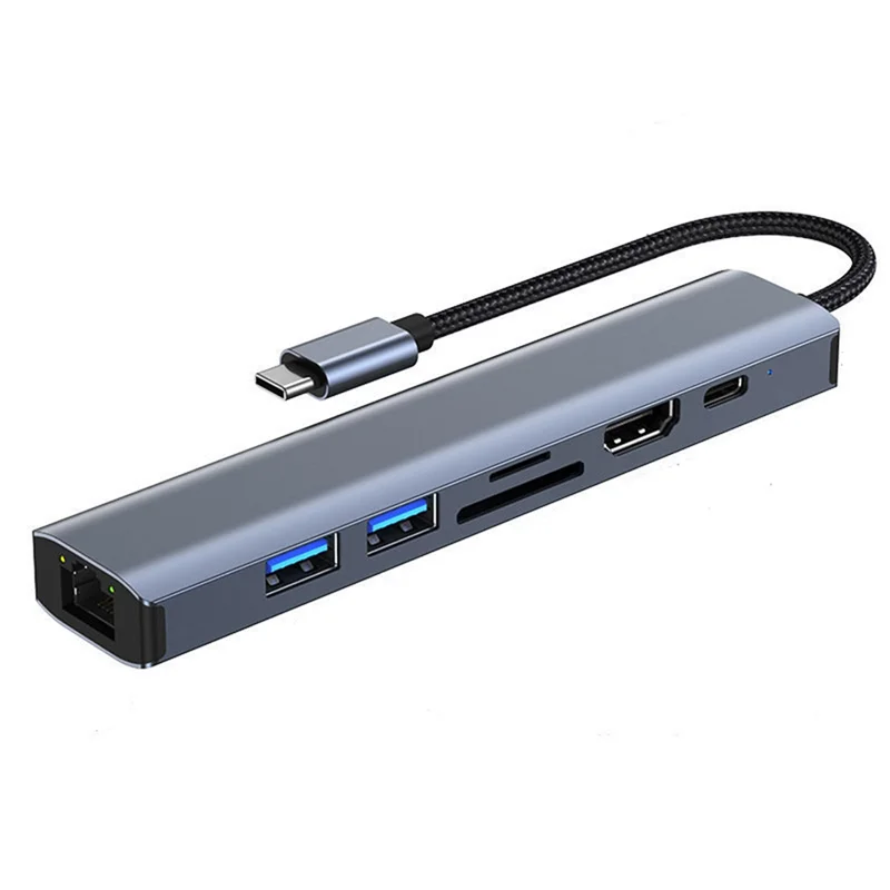 7в1 Тип C-концентратор USB 3.0 Многопортовый разветвитель-адаптер с PD-портами Устройство чтения карт для замены компьютеров