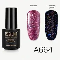 7мл. Гель лак Rosalind люминесцентный, светящиеся в темноте УФ UV. с блестящий с блестками Розовый А664