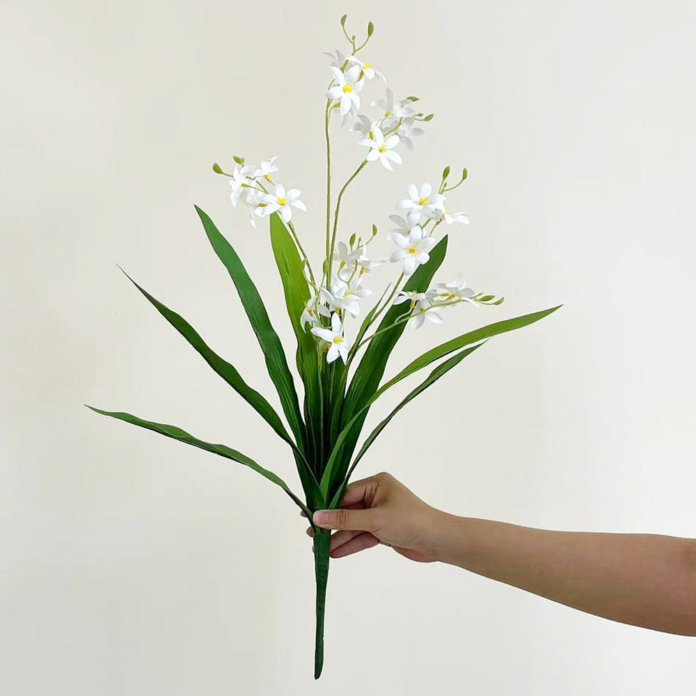 7 Веток Милан Цветок Весенняя Мелодия Орхидеи С Зелеными Листьями Искусственная Орхидея Фаленопсис Зеленые Растения Домашнее Украшение Свадьба белый