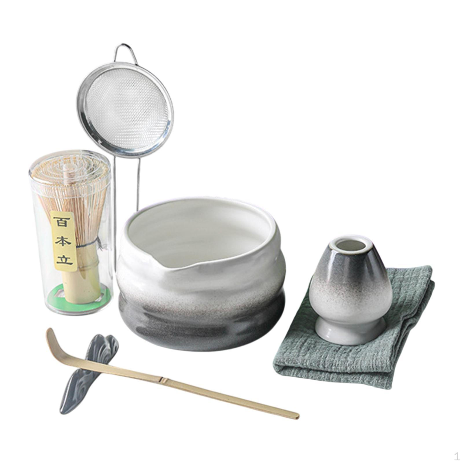 7 предметов японский набор для приготовления чая матча ложка миска набор для домашнего хозяйства Gradient Black