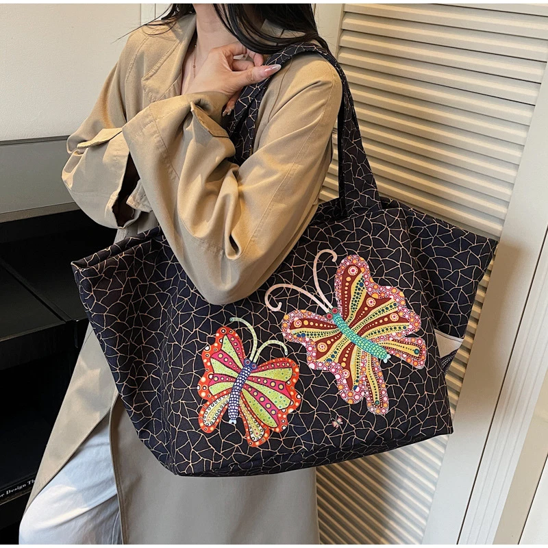 7-стильная сумка через плечо с эстетическим художественным принтом, большая вместительная женская сумка-тоут в горошек с тыквой, сумка для покупок в этническом народном стиле