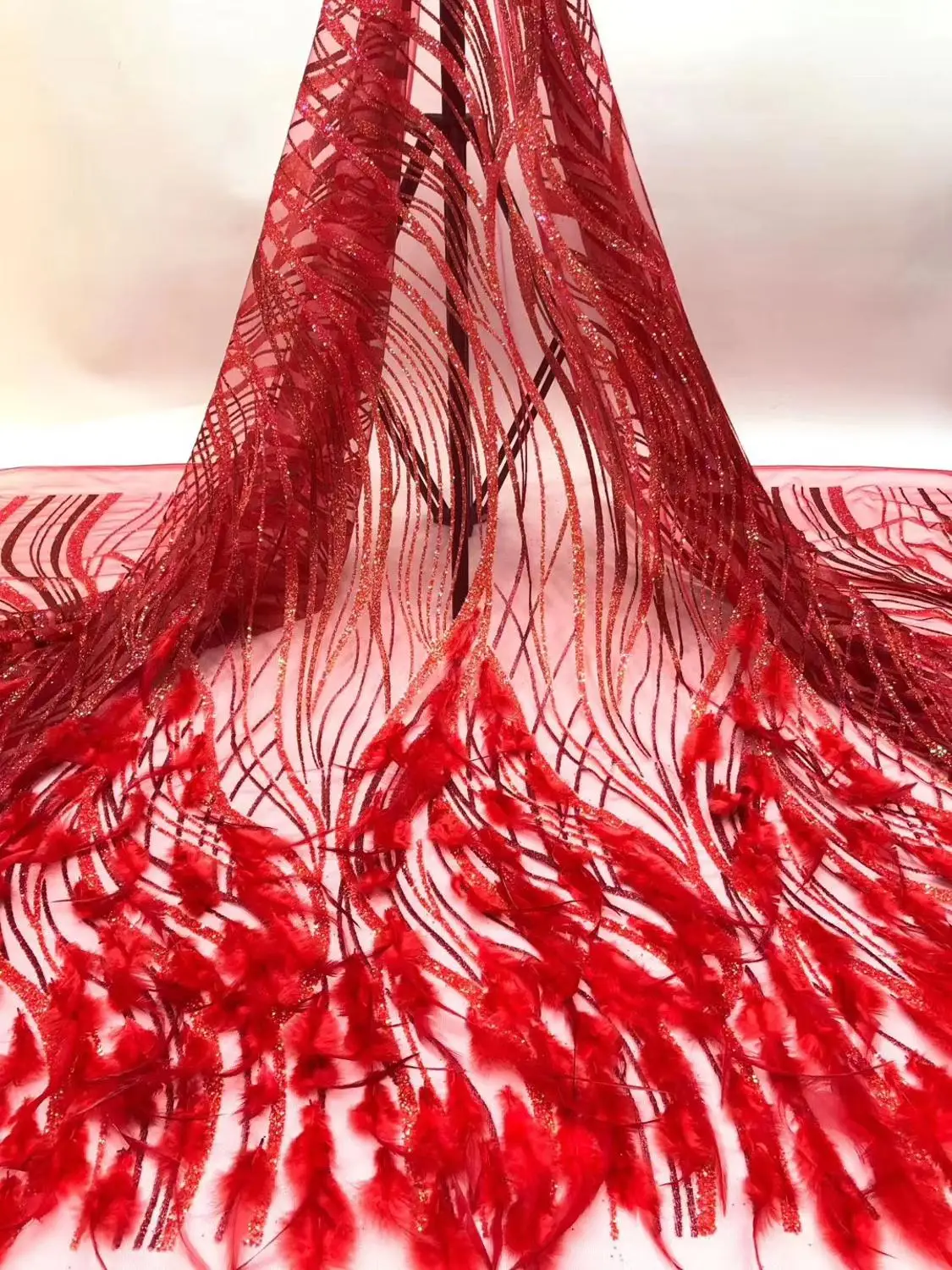 7 цветов (5 ярдов/шт), блестящая африканская французская кружевная блестящая склеенная сетчатая кружевная ткань с перьями, вечерние платья в...