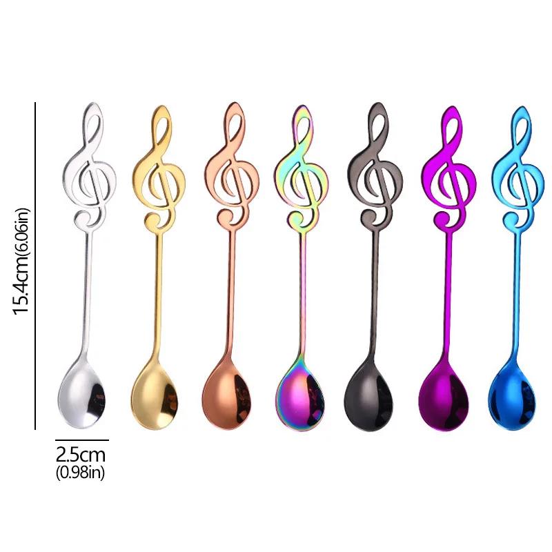 7 шт. ложек из нержавеющей стали 304 с музыкальными нотами, креативная круглая ложка для кофе и молока, музыкальная палочка, ложка для десерта и мороженого, столовые приборы