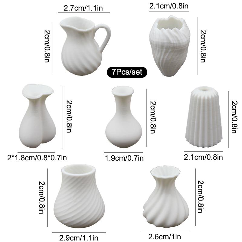 7 шт./набор кукольный домик белая художественная ваза модель орнамент кукольный дом цветочная композиция декор кукольный домик миниатюрная сцена поделки украшения M