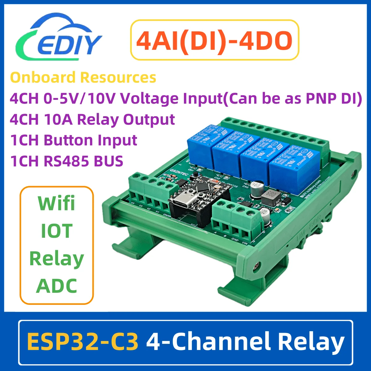 7-24 В постоянного тока ESP32-C3 Супер мини-плата расширения 4AI-4DO RS485 Релейный модуль для Arduino WEB MQTT Ethernet Network IOT