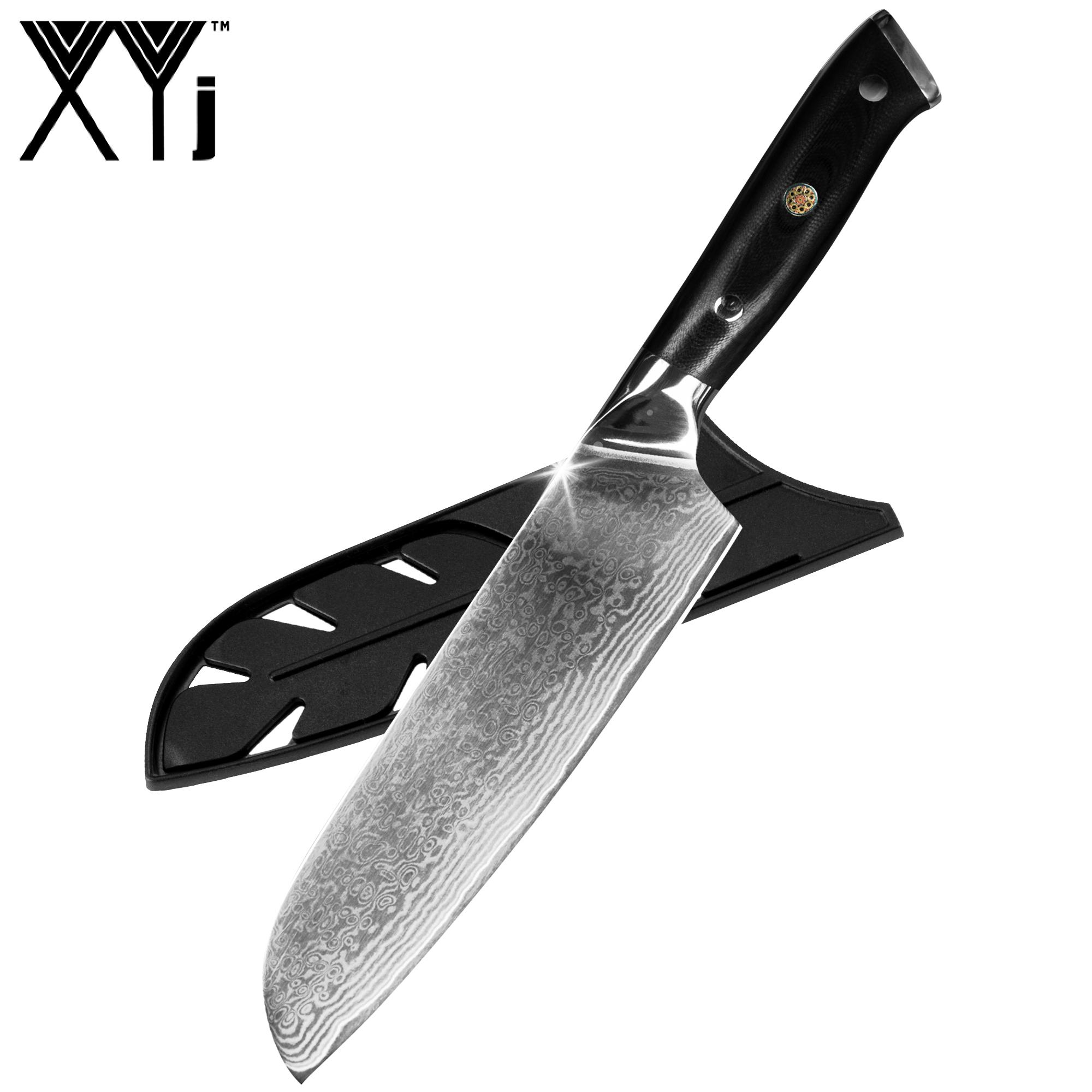 Длина клинка:18см (VG10 Дамасская сталь) Кухонный нож XYJ изготовлен из высококачественной японской дамасской высокоуглеродистой стали VG10, на данный момент легко режет мясо, фрукты, овощи. Хороший набор столовых приборов для вашей кухни Пакет включает: 1 * поварской нож
