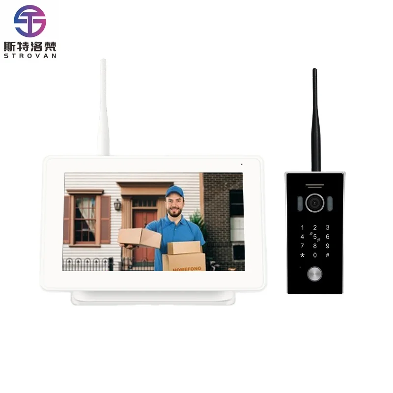 7 Inch Glass Touch Screen Video Door Phone System Wireless with 800M&900M Intercom