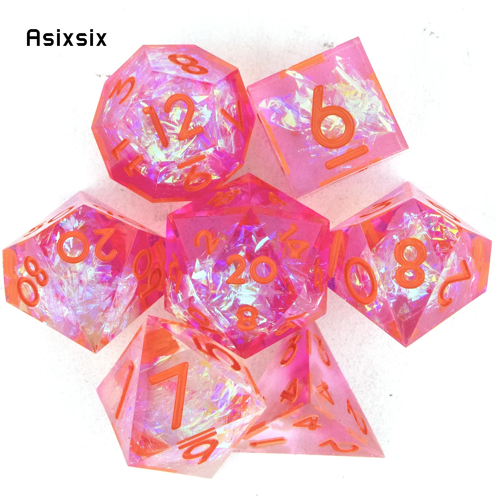 7 Pcs Pink Red Number Sharp Edge Resin Dice Perfect For Card Games Board Games For Critical Role, Rpgs, D&D