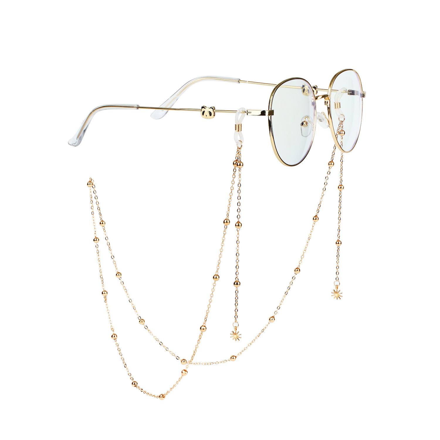 70 см золотистая цепочка для очков для женщин, элегантная подвеска в форме луны и солнца с буквами-бабочками, ремешок с подвеской, противоскользящие очки на шею, ювелирные изделия в подарок sun