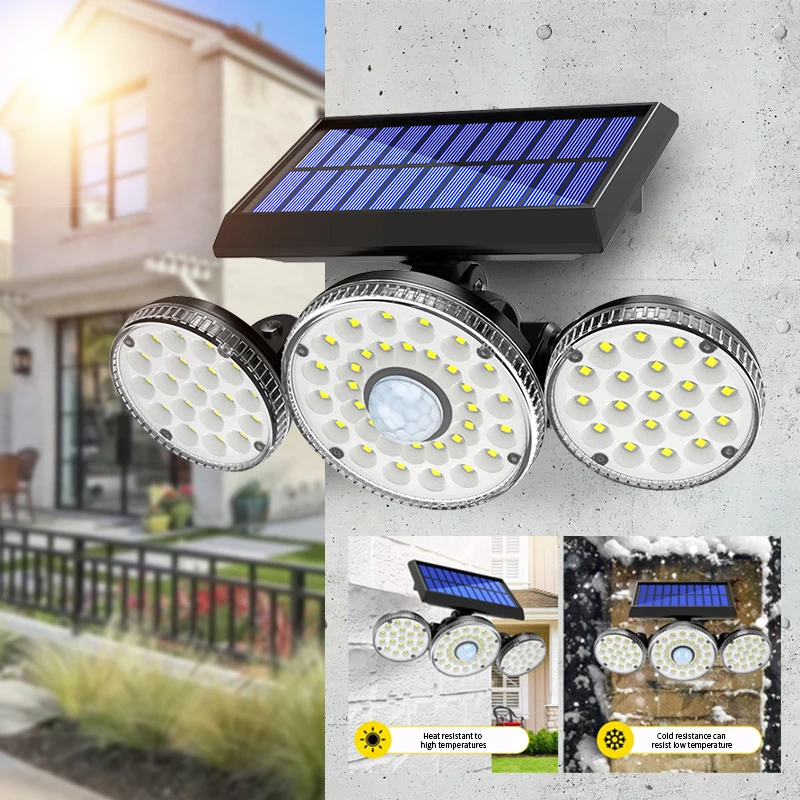 70LED солнечный светильник Открытый солнечный светильник Водонепроницаемый стенная солнечна лампа 3 головы режимов Сенсор украшения сада Дв...