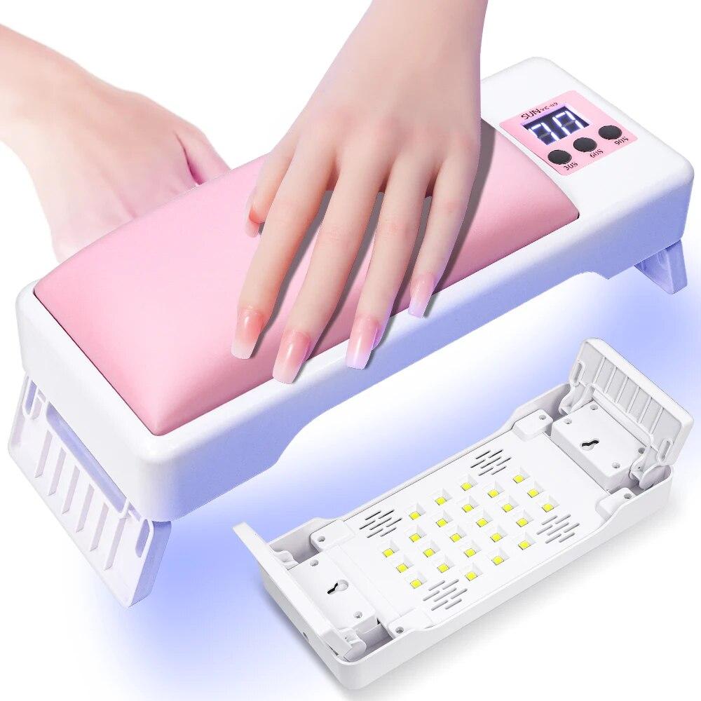 72 Вт 24LED лампа для сушки ногтей с подушкой для рук УФ-сушилка для ногтей отверждающий гель-лак умный таймер солнечный свет инструменты для дизайна ногтей us розовый