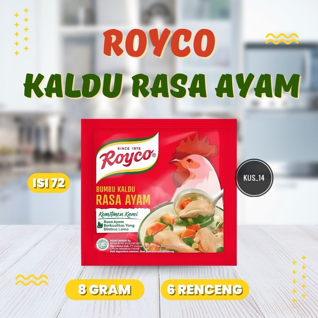 Royco Kaldu Sapi / Ayam dibuat dengan daging sapi / ayam yang direbus lama memberikan kaldu mantap dan rasa daging sapi /ayam lezat untuk semua masakan.