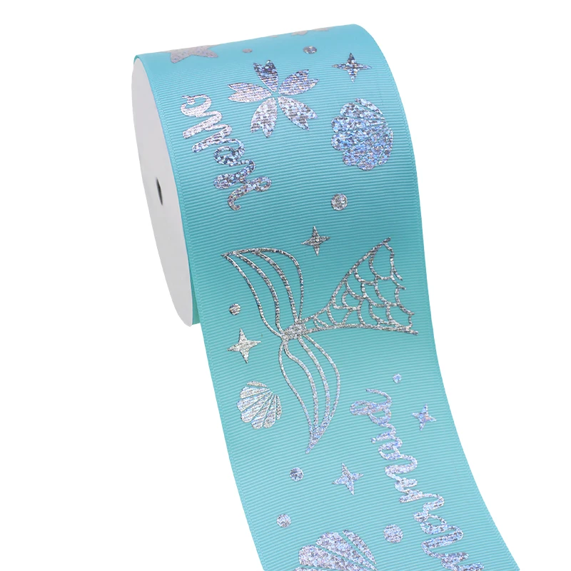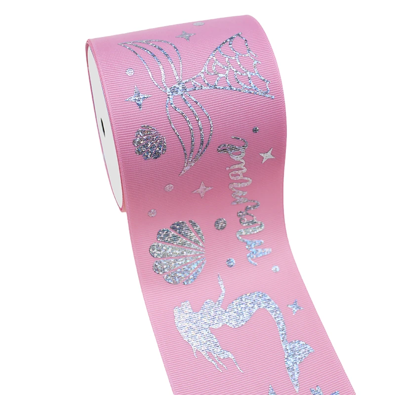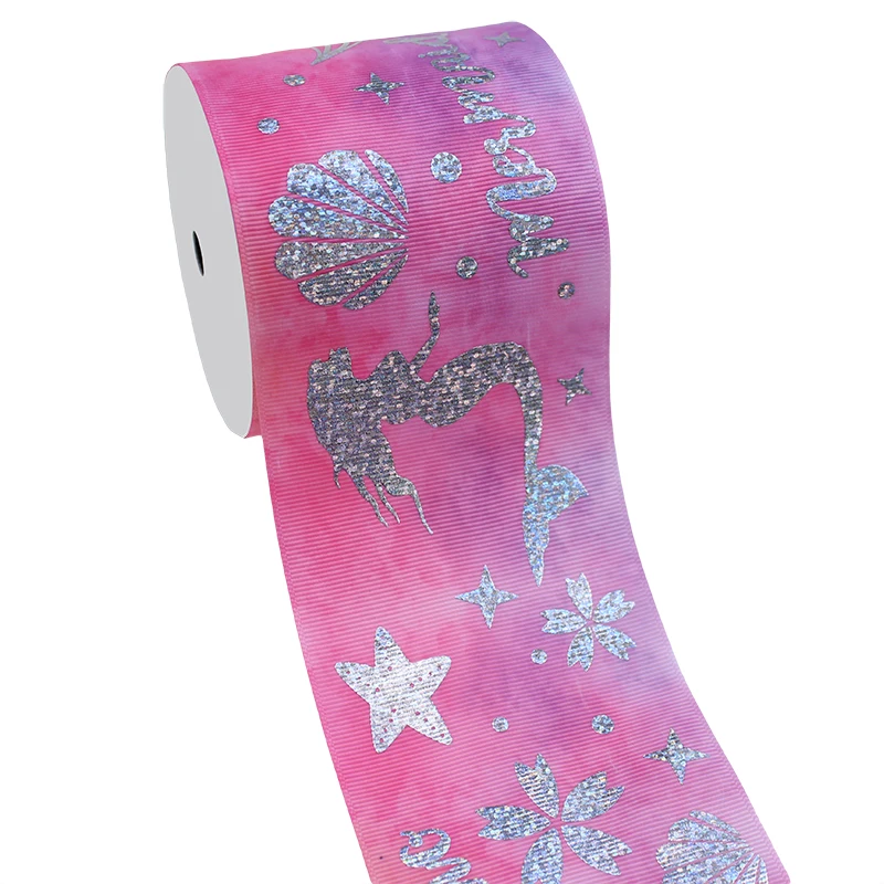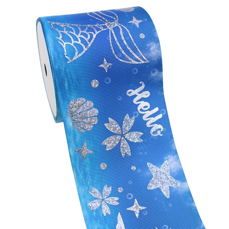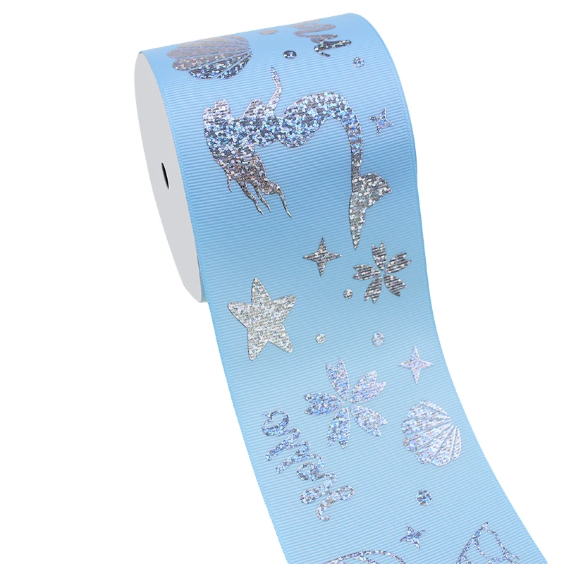 75 мм Голограмма лазерная серебряная фольга Русалка печатная корсажная лента для рукоделия DIY банты для волос украшение для дня рождения
