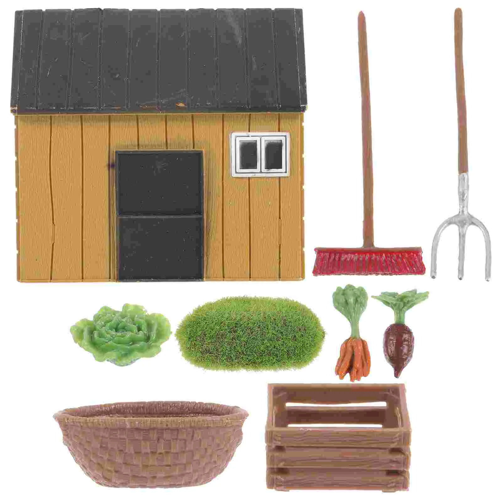 7pc Mini Farmhouse Farm Tool Veggie Set Decor 19pcs Miniature Props Realistic Detail Vivid Texture Mini Farm Model Toy