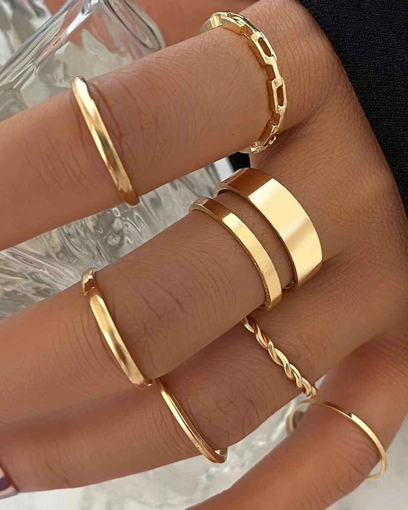 7pcs Simple Trendy Stackable Geometric Rings Set, Gold