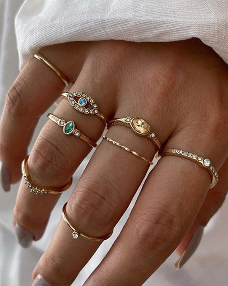 7pcs Stackable Rhinestone Eye Geometric Rings Set, Gold